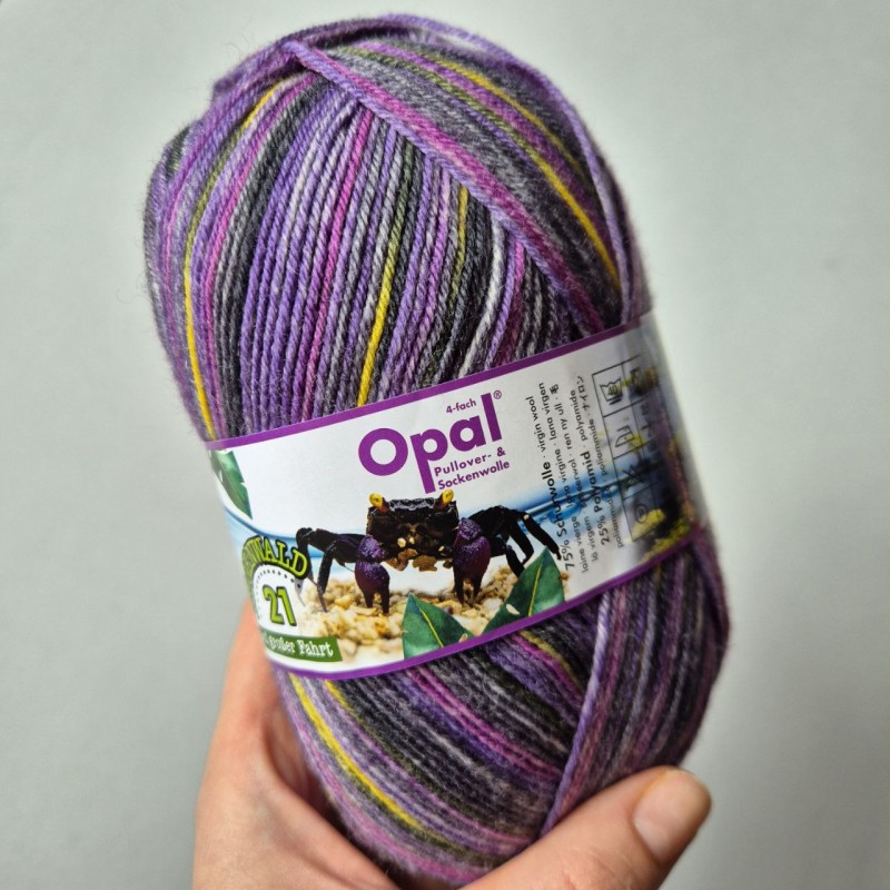 Opal is a German brand of high quality sock yarn. Regenwald collection is dedicated to different animals in the jungle. Percent of profits goes to support rainforest.