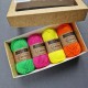 Scheepjes Catona NEON set includes 4 balls of Scheepjes Catona yarn 25 grams each in neon colors: green, pink, yellow and orange. Packed in a box with transparent window.