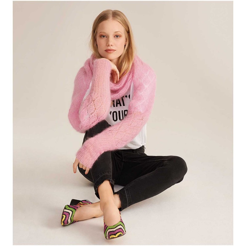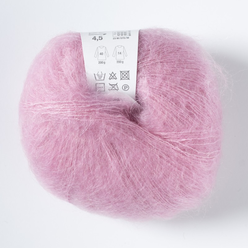 Класичний кід мохер на шовку, неймовірно м'який, легкий та повітряний. Можна використовувати самостійно або міксувати з іншою пряжею. Чудово підходить для делікатних, але при цьому дуже теплих светрів, кардиганів, шалей, шарфів, тощо.